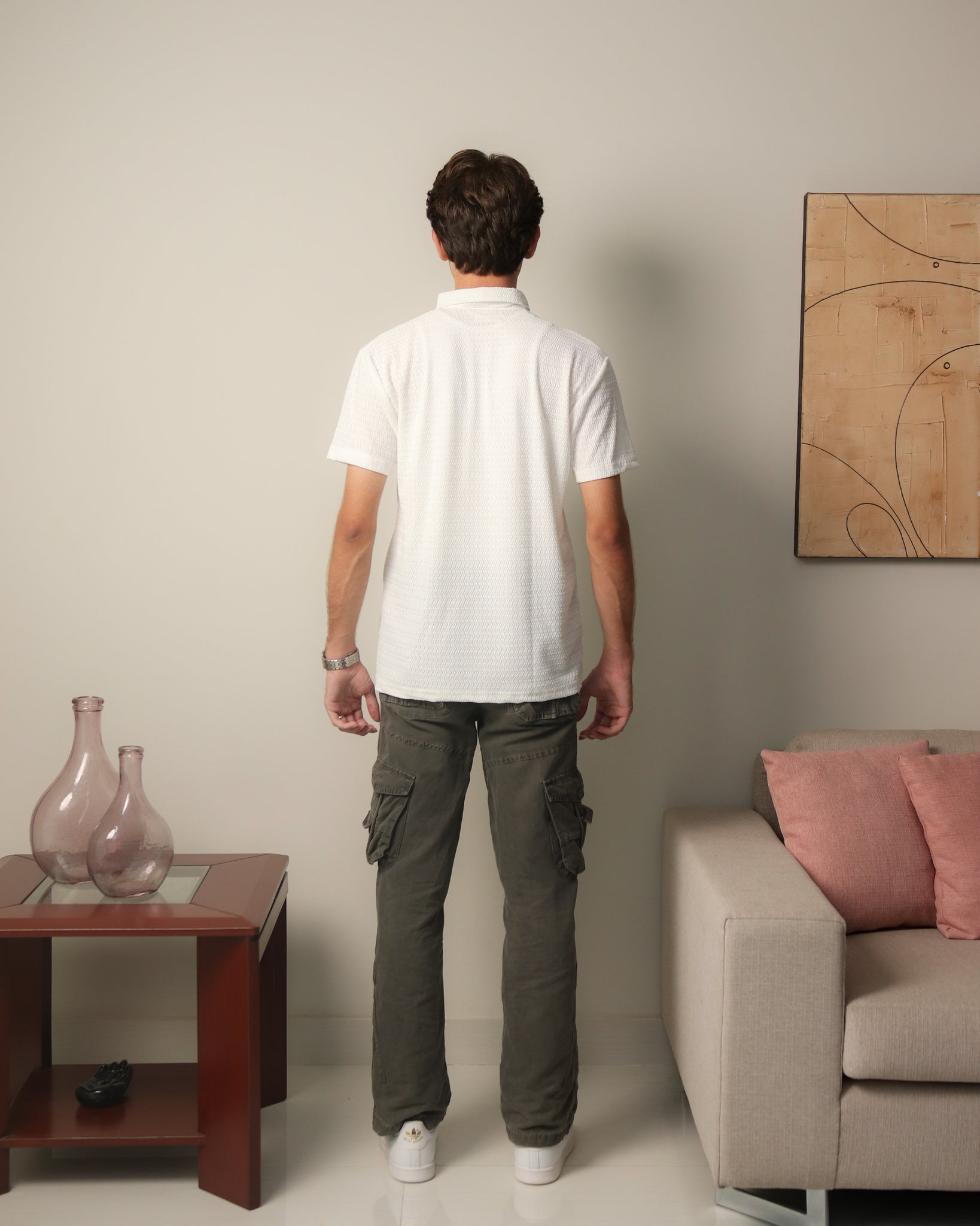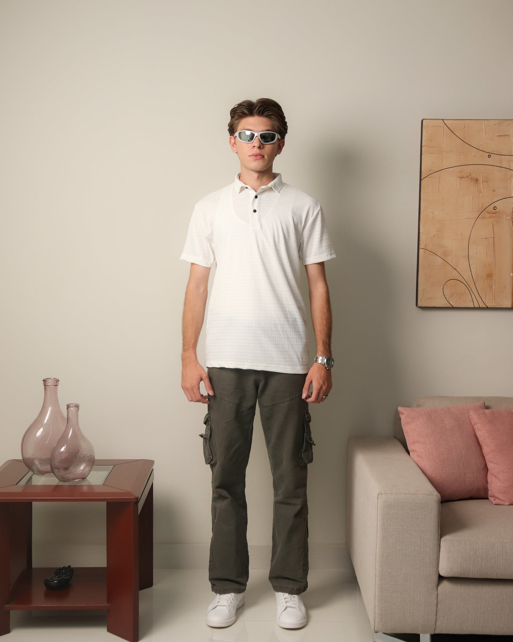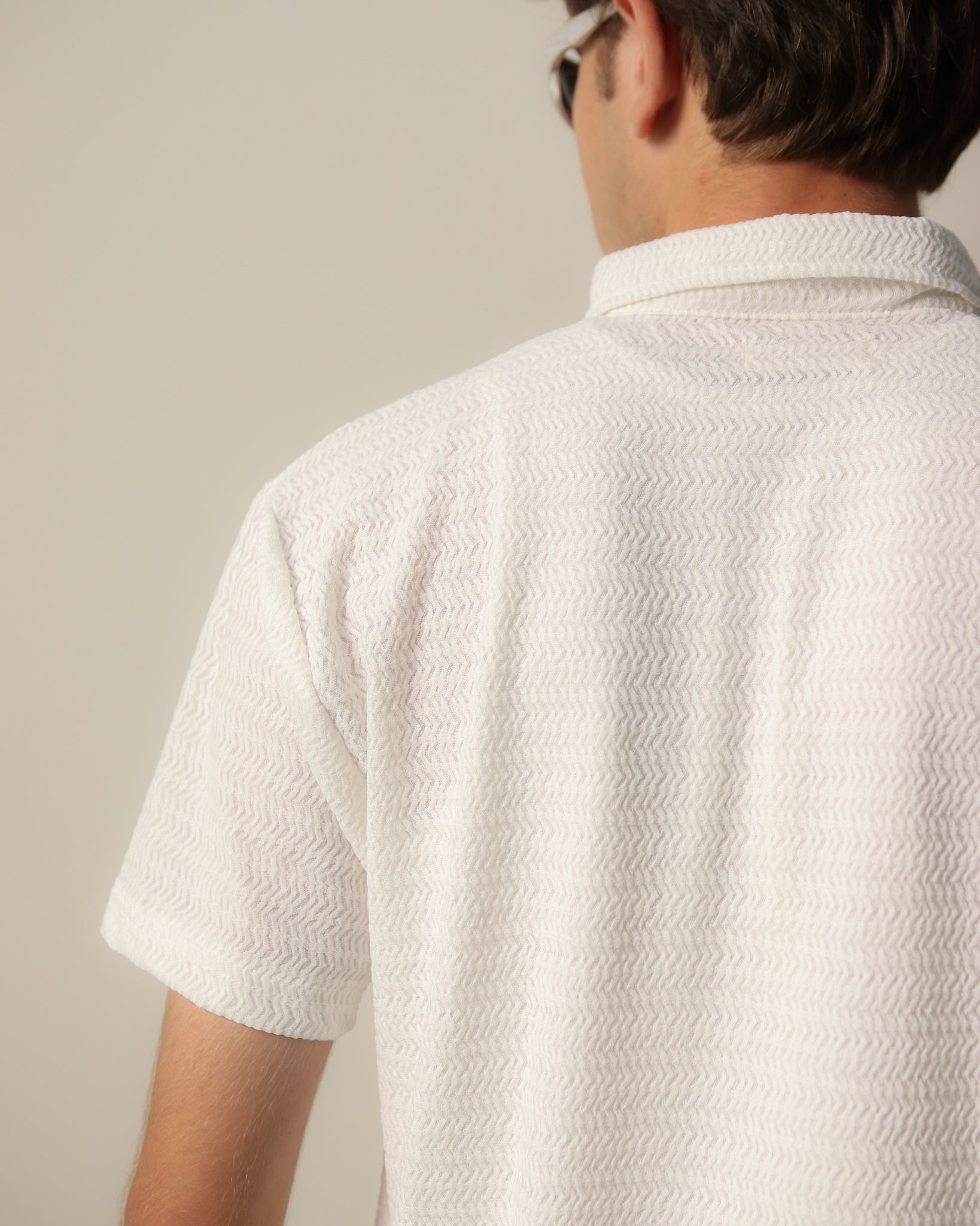 Woven Textured Lycra Polo - White